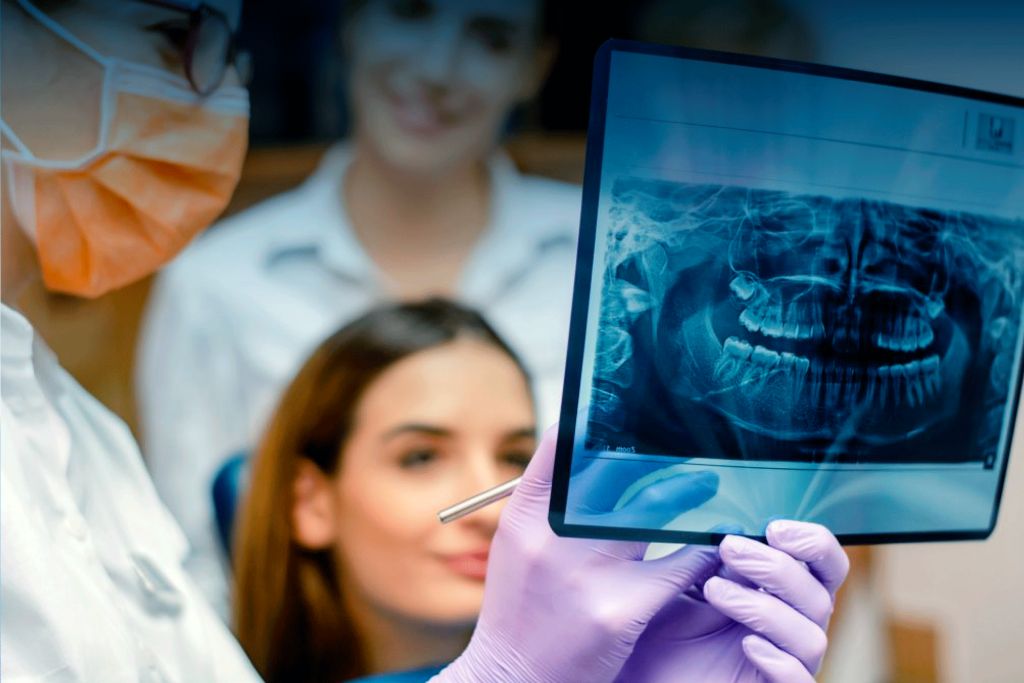 Herramienta para el correcto diagnóstico, permitiendo recopilar información que no podemos ver a simple vista, como dientes extras, tumores, afecciones en raíces, posición de raíces.